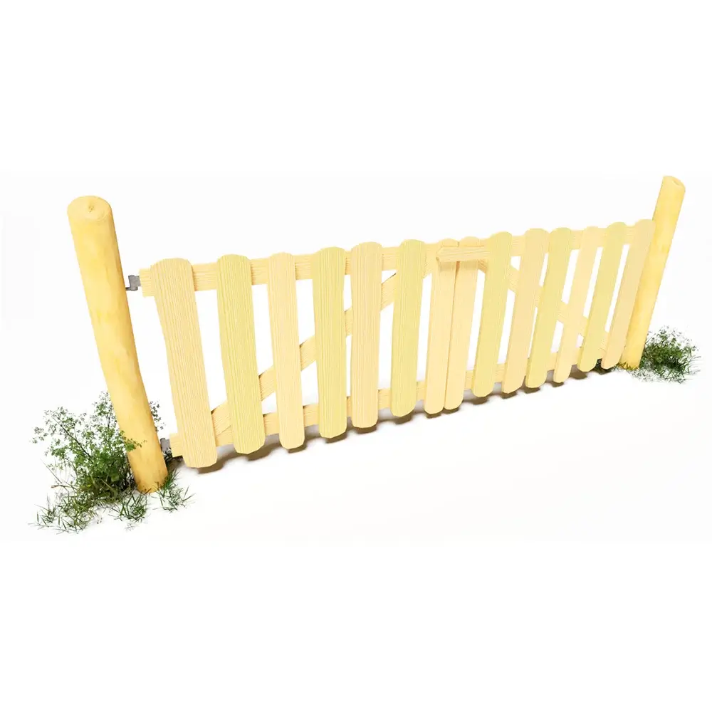 - Natürliche Ästhetik: Die vertikalen Staketen und massiven Holzriegel des Zauns fügen sich harmonisch in jede naturnahe oder landschaftsgestalterische Umgebung ein.