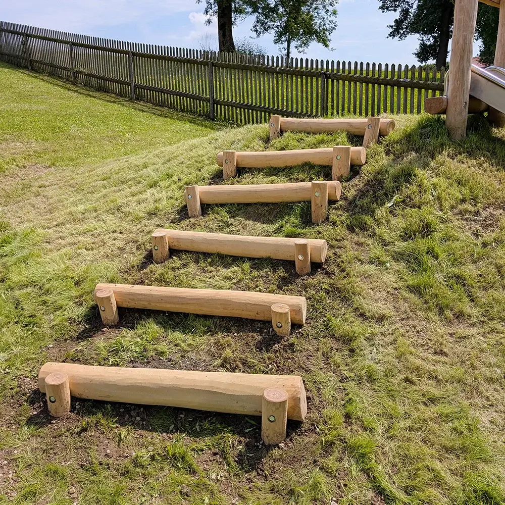 Gefertigt nach EN 1176; aus natürlichen, unbehandelten Robinienstämmen Ø11-18 cm mit natürlicher Wuchsform, splintfrei; zum festen Einbau in Beton.