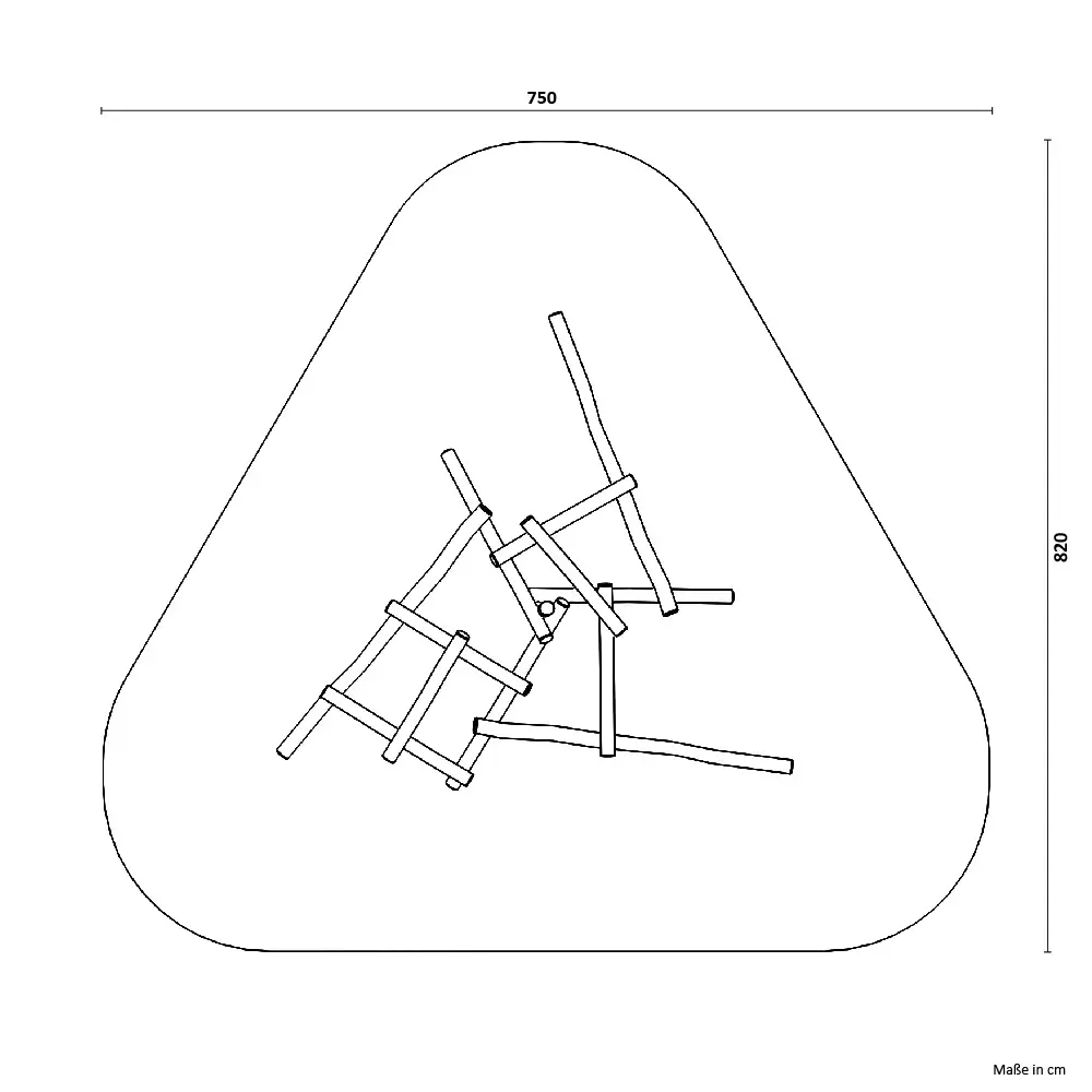 Das Geniale an diesem Klettergerät: Es sieht aus, als wäre es organisch gewachsen! Der zentrale Pfahl bildet den Mittelpunkt, von dem aus schräge Rundhölzer in alle Richtungen wegführen. Kinder entdecken immer wieder neue Wege, sich darauf zu bewegen.