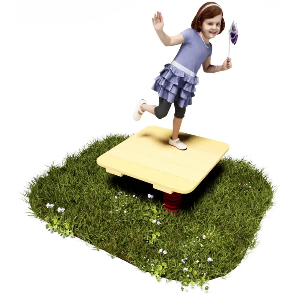 Niedriges Holzpodest auf Schwingfedern als spannendes Balancierelement